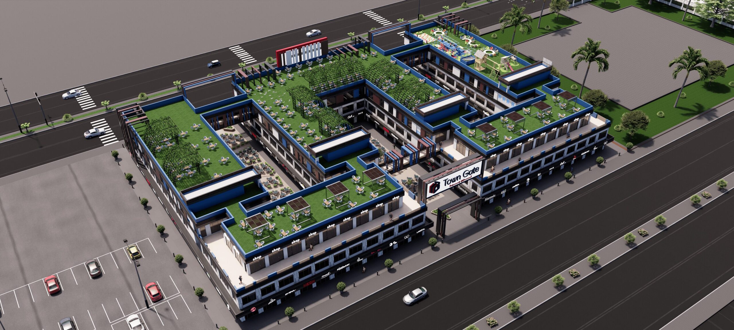 تاون جيت مول هو أحدث مشروع لشركة TGD في منطقة غرب المطار على طريق الواحات. يوفر هذا المشروع الاستراتيجي فرصة استثمارية فريدة، حيث يجمع بين الأنشطة التجارية والخدمية في واحدة من أسرع المناطق نموًا.