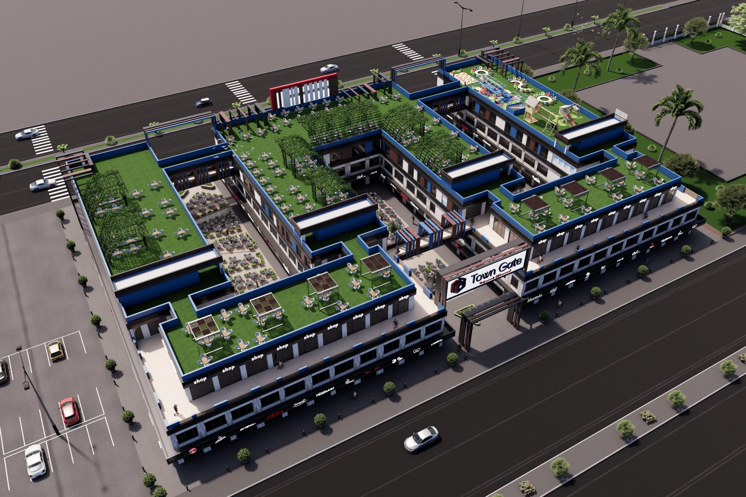 Town Gate Mall is TGD’s latest project in West Airport on Wahat Road. This strategic development offers a unique investment opportunity, combining commercial and service-oriented activities in one of the fastest-growing areas.